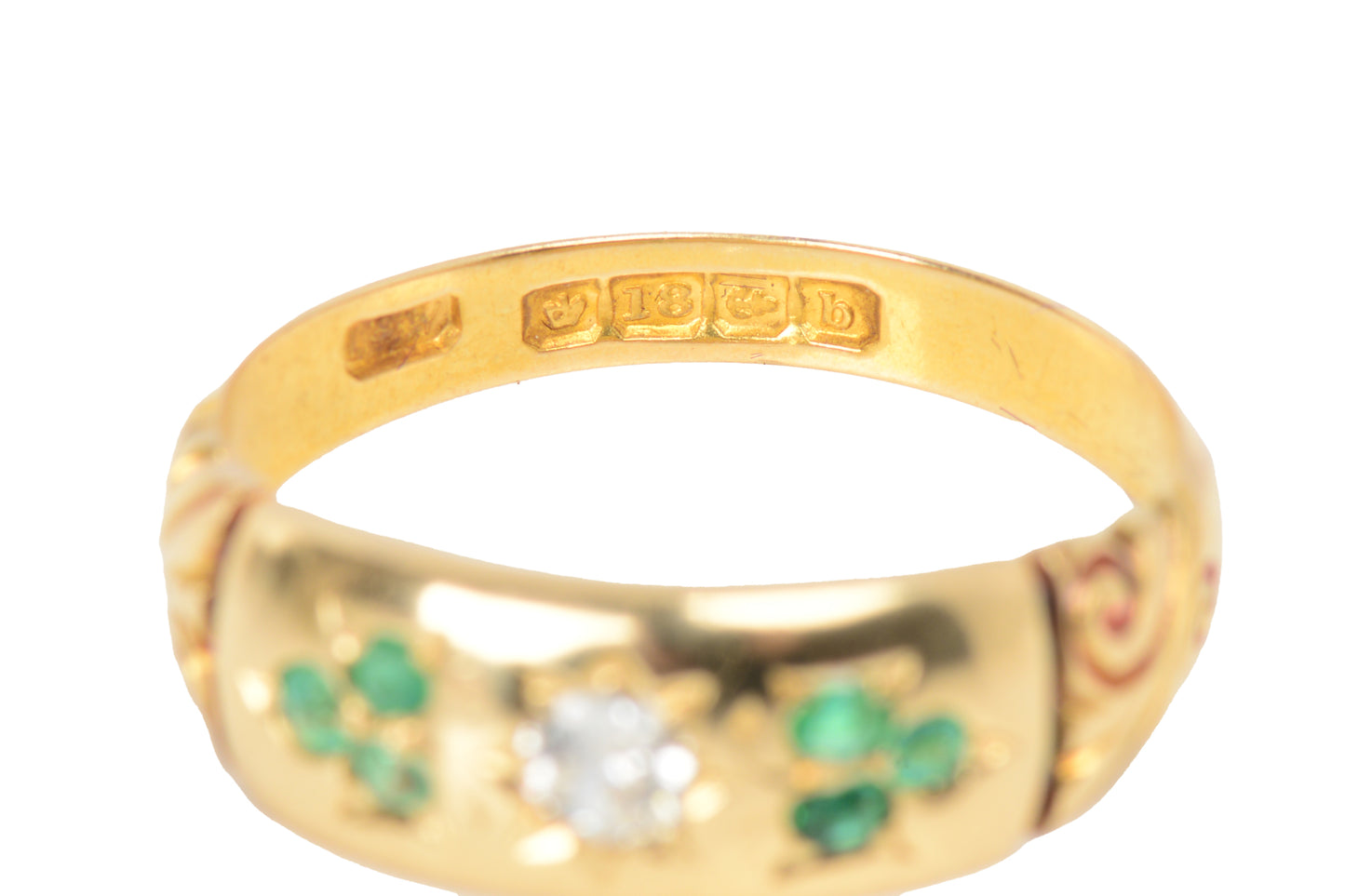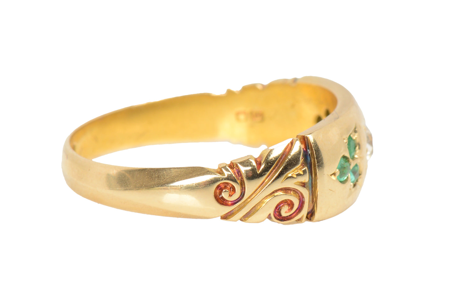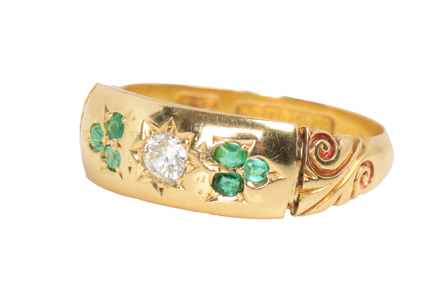 Antique Botanical Motif Emerald Diamond Ring of 1901