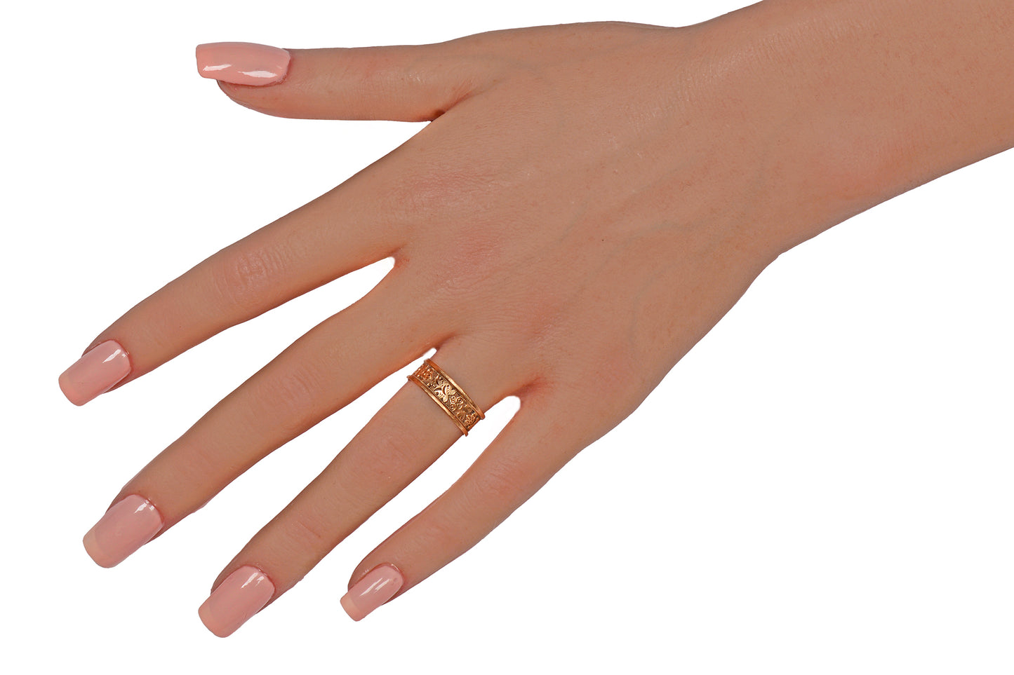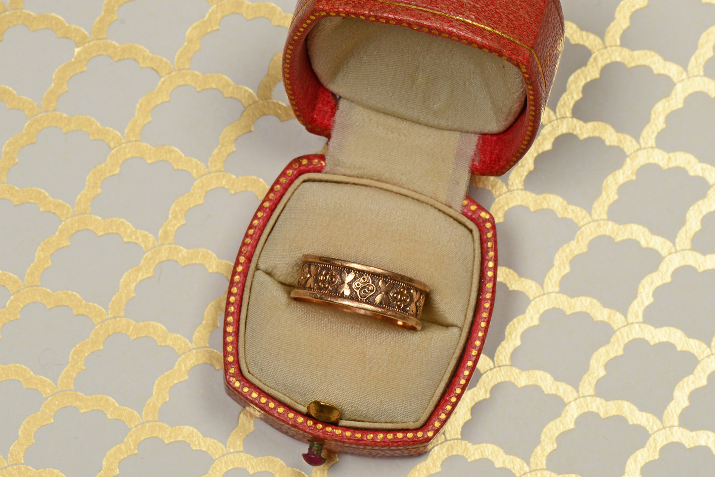 JR Wood Heart Motif Patterned Antique Wedding Band