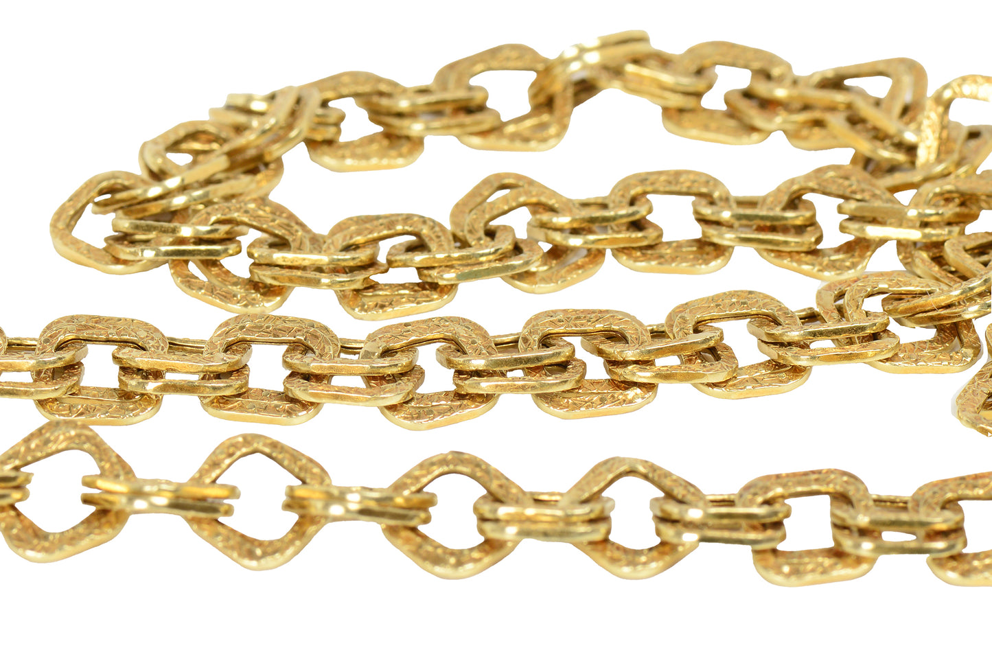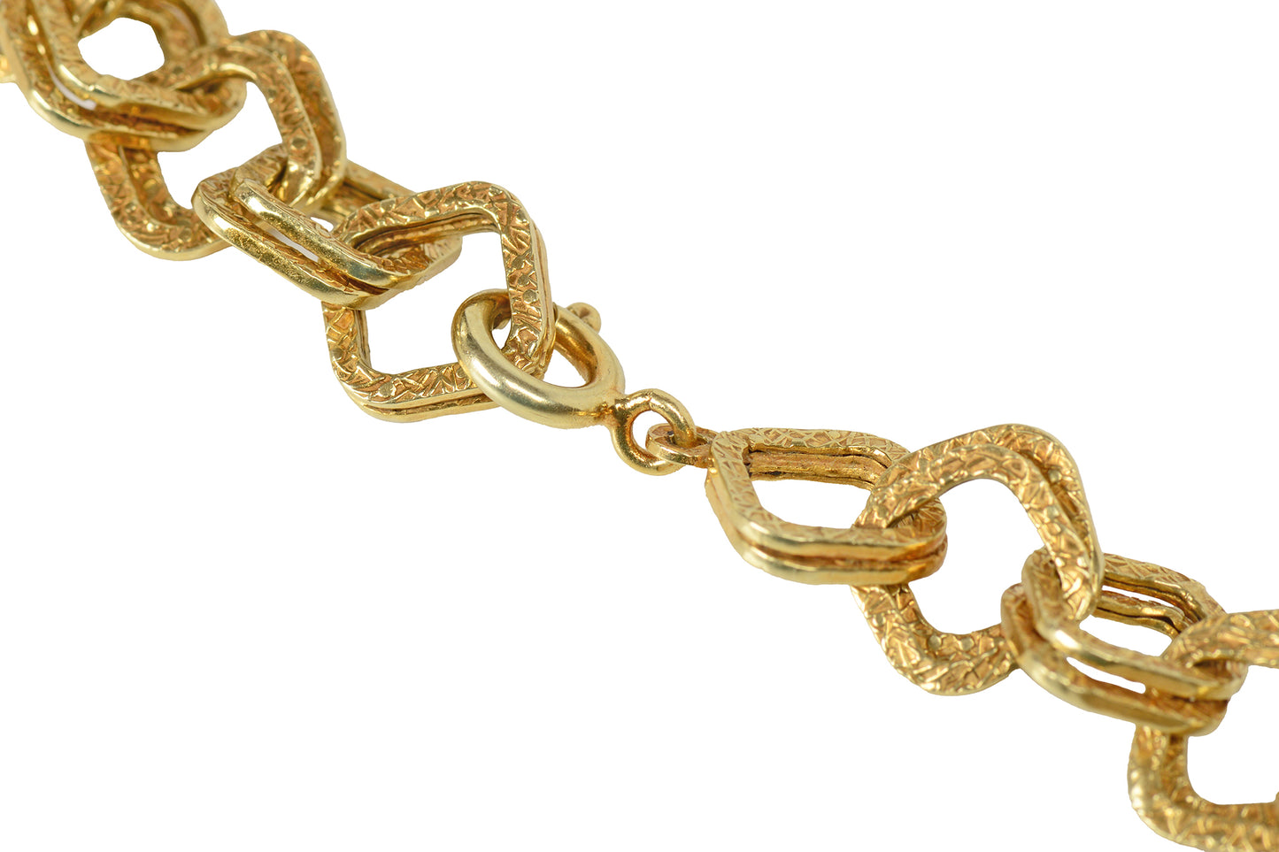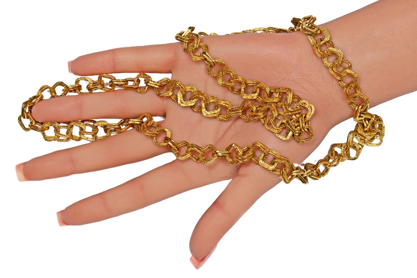 This vintage necklace is all 14k, gold, but it has the look of 18k with its rich, bronze hued, patina.