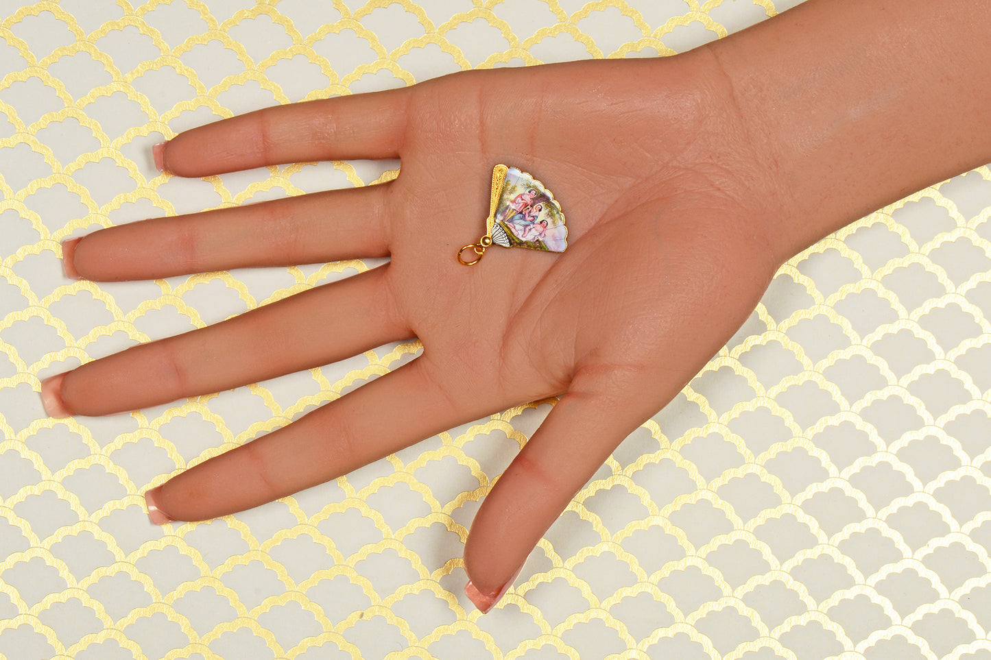 Miniature Enamel French Hand Fan Pendant Charm