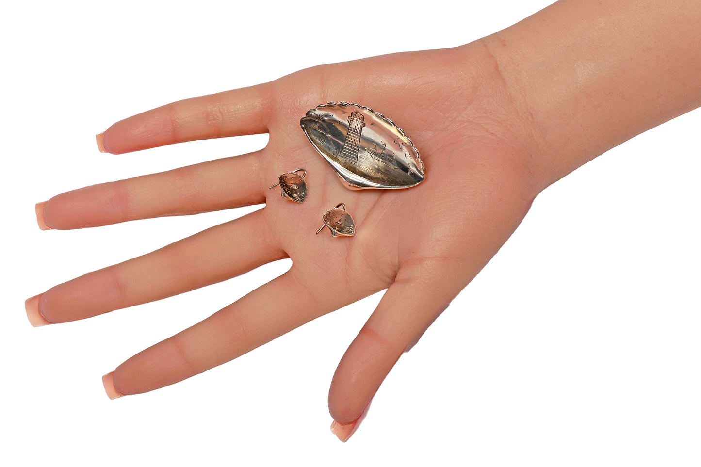 Silver Shell Motif Seascape Brooch & Earrings in box