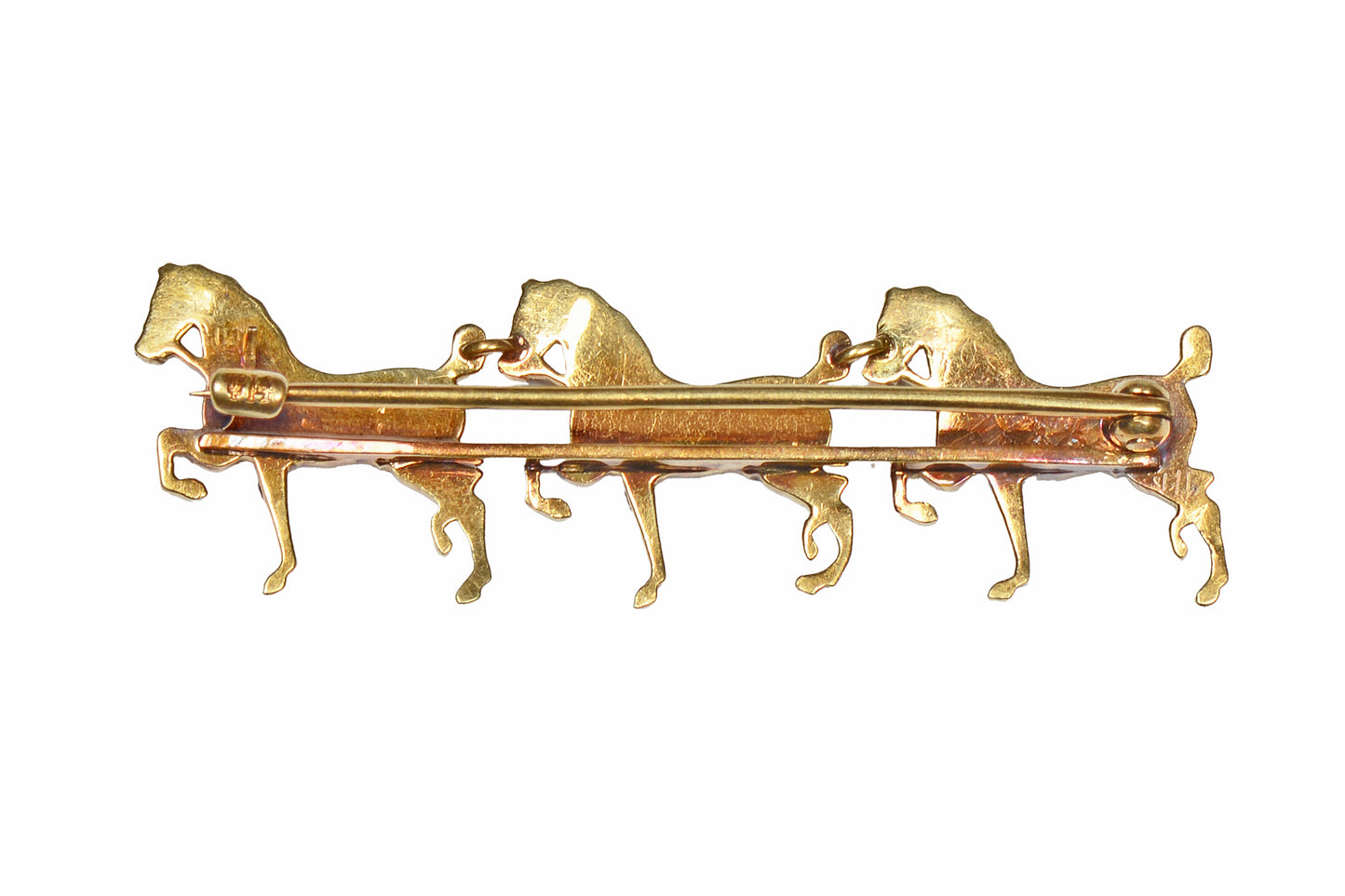 Sloan & Co. Three Horse Pearl Gold Brooch