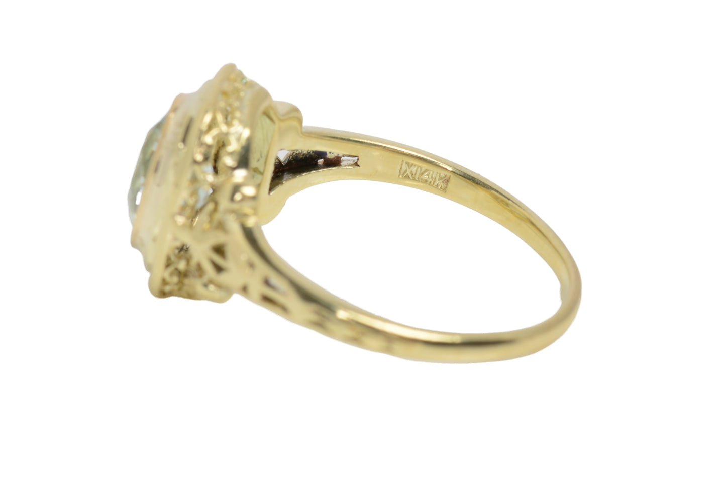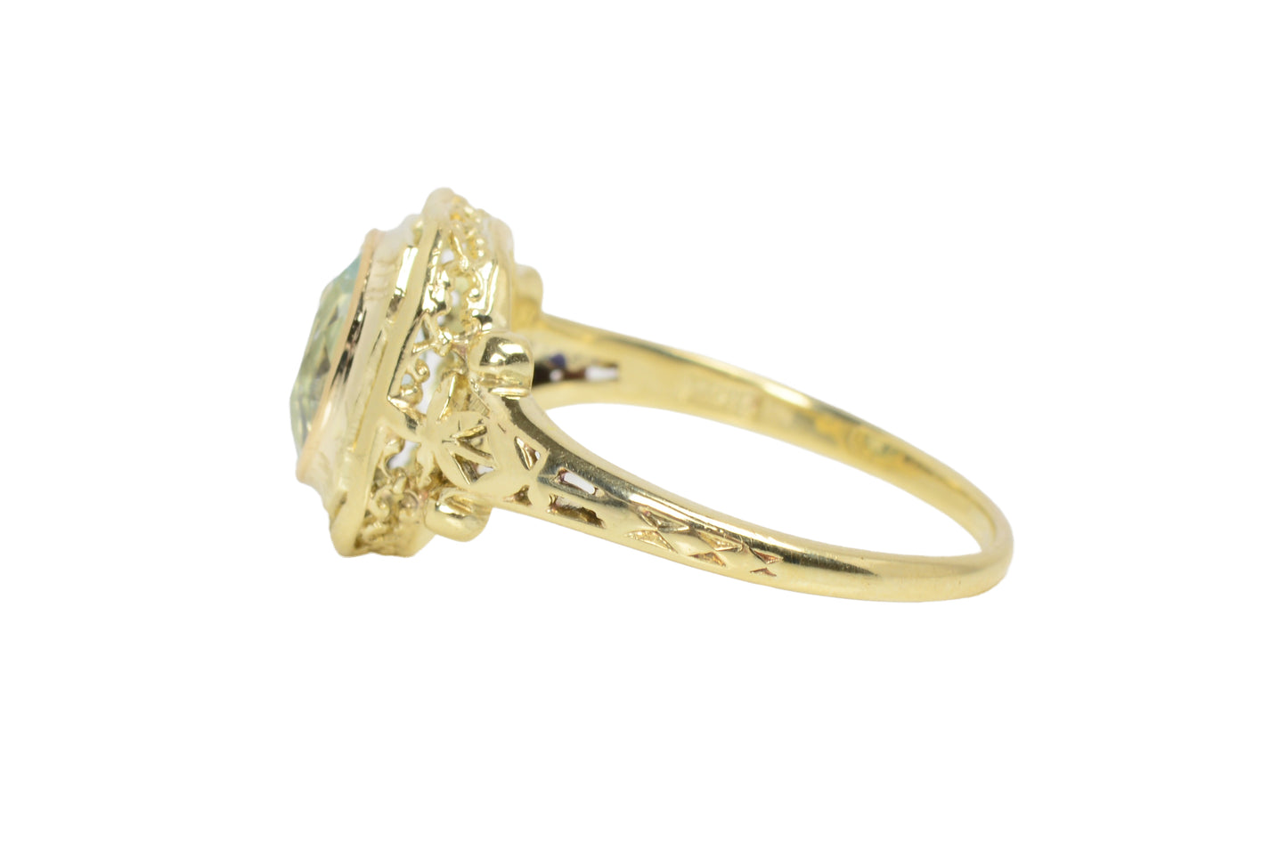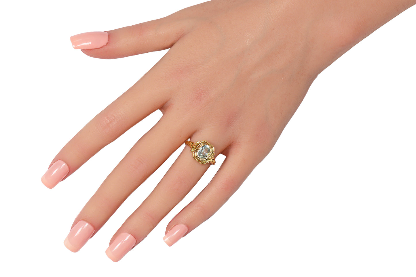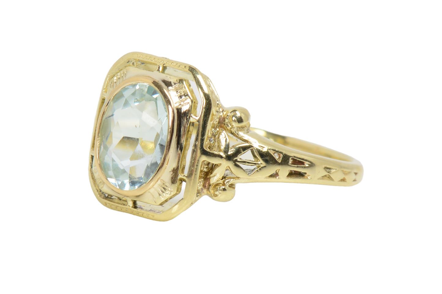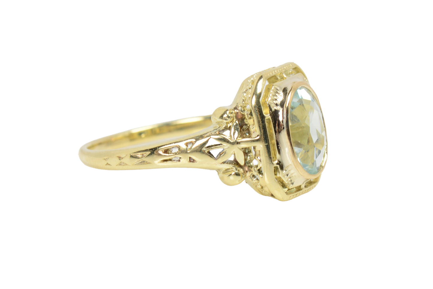 Vintage Oval Aquamarine Yellow Gold Filigree Ring