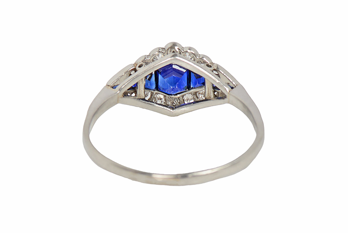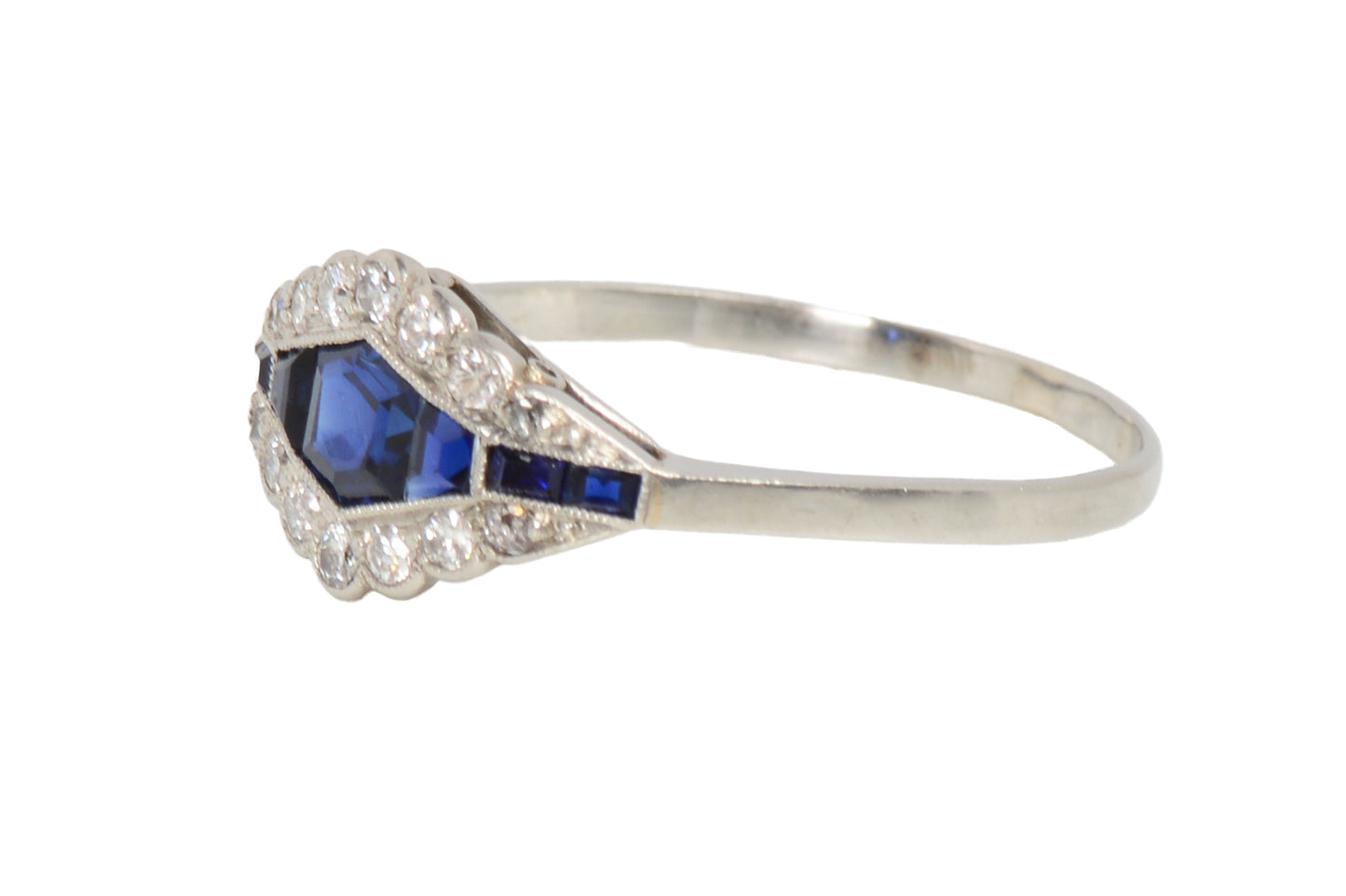 Art Deco Royal Blue Sapphire Diamond Platinum Ring