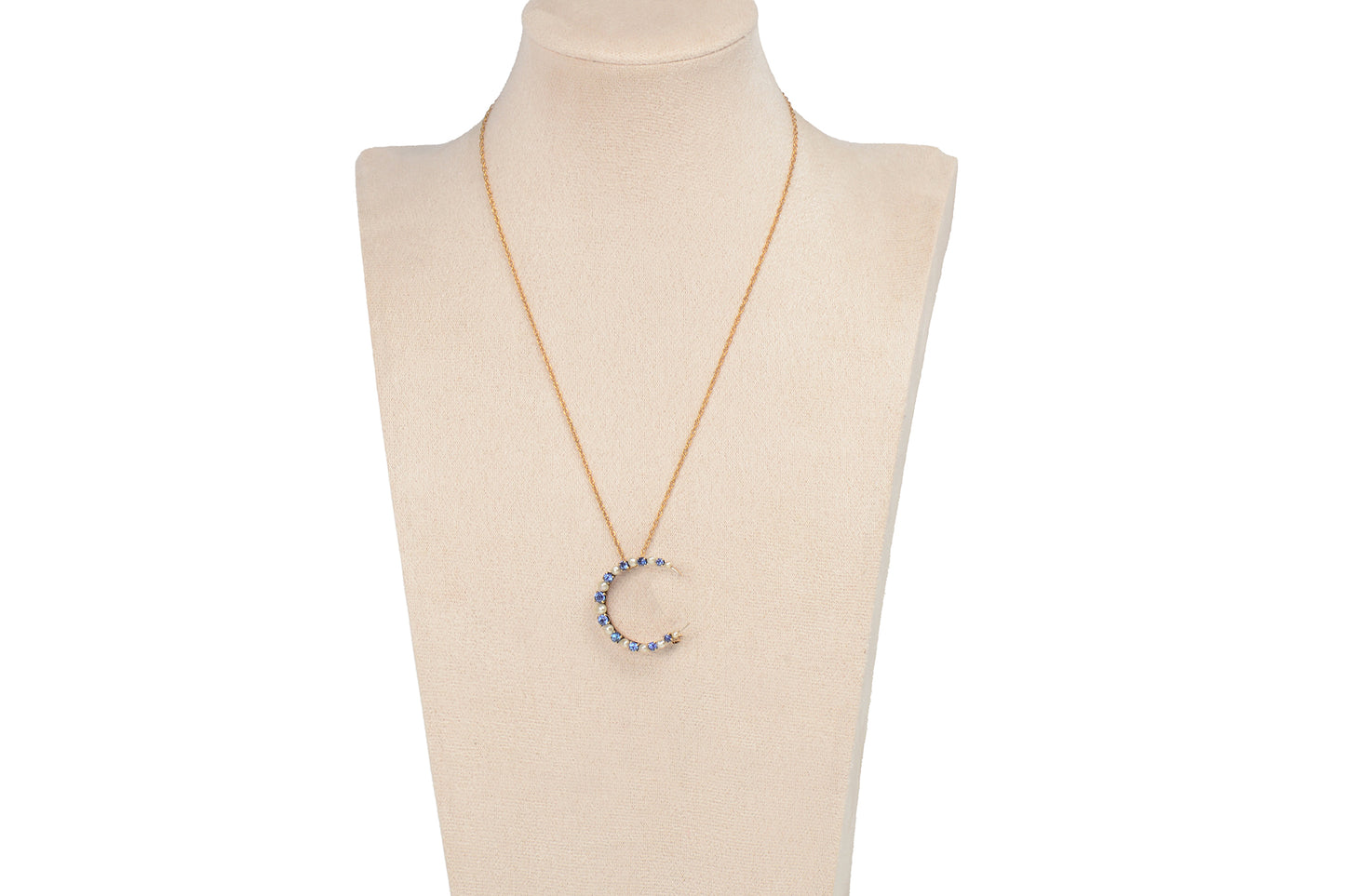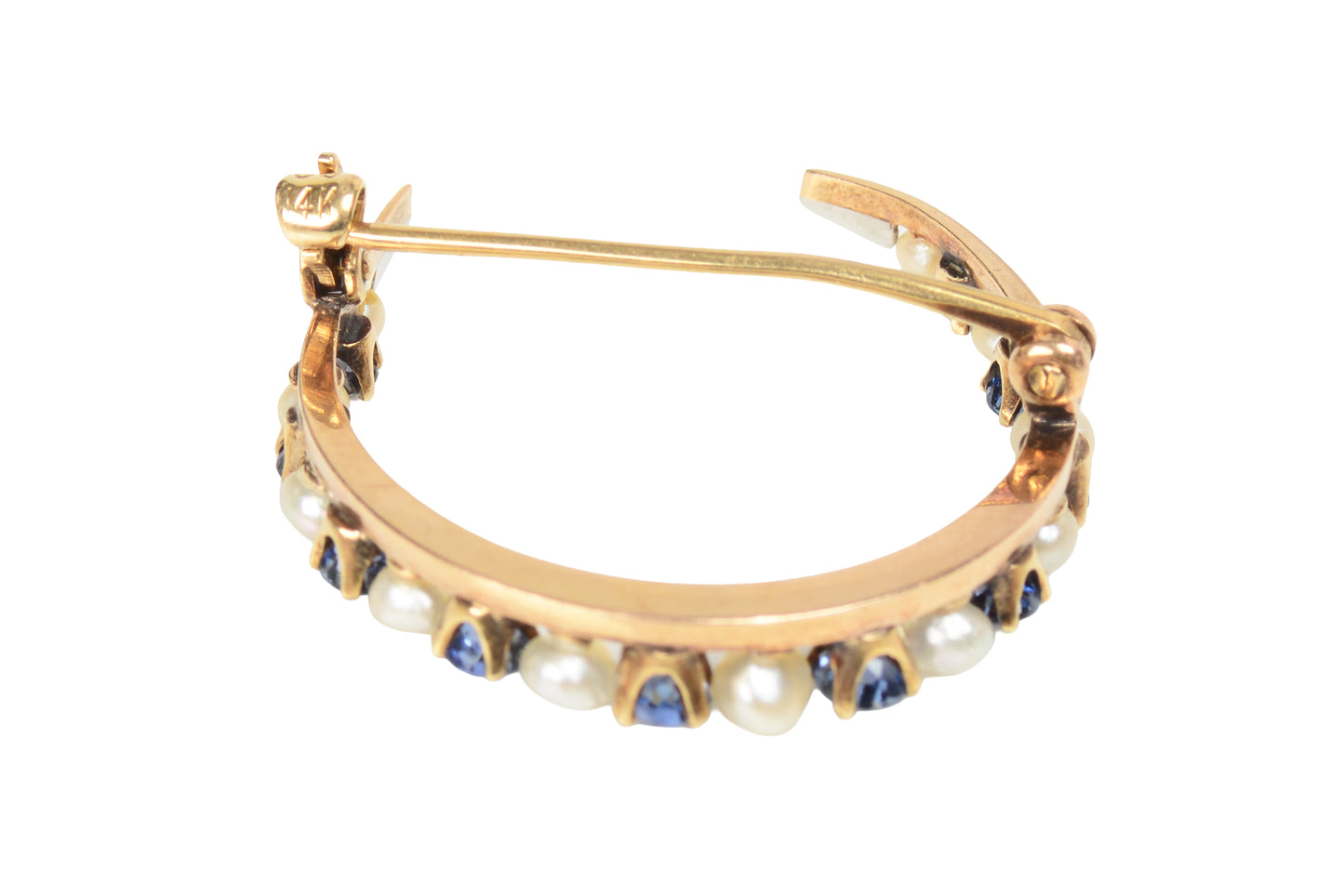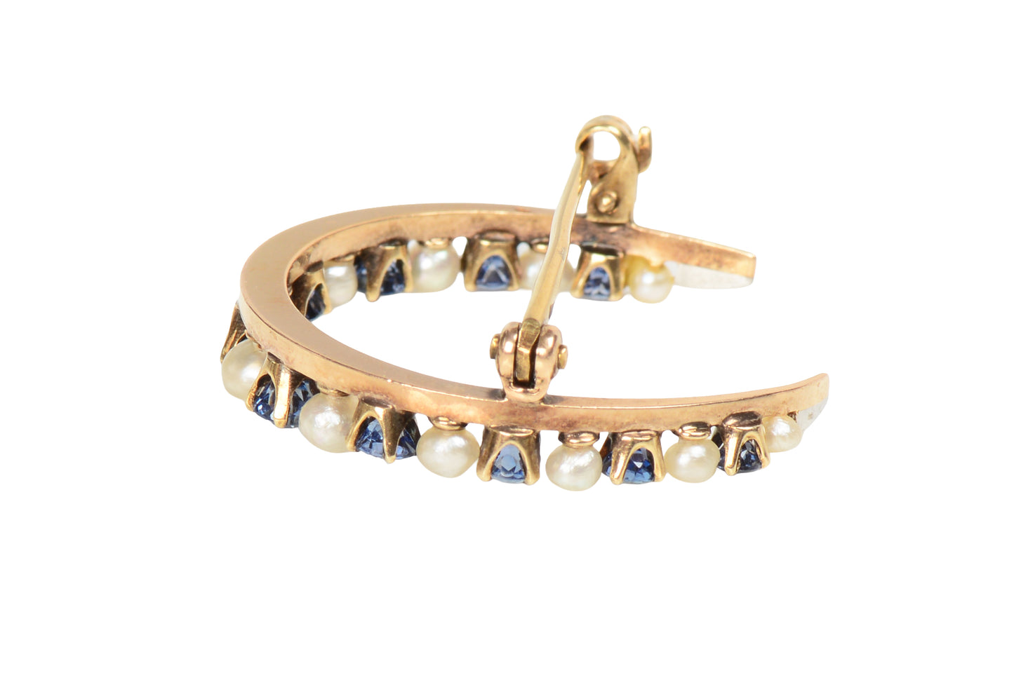 Krementz Montana Sapphire Natural Pearl Crescent Brooch