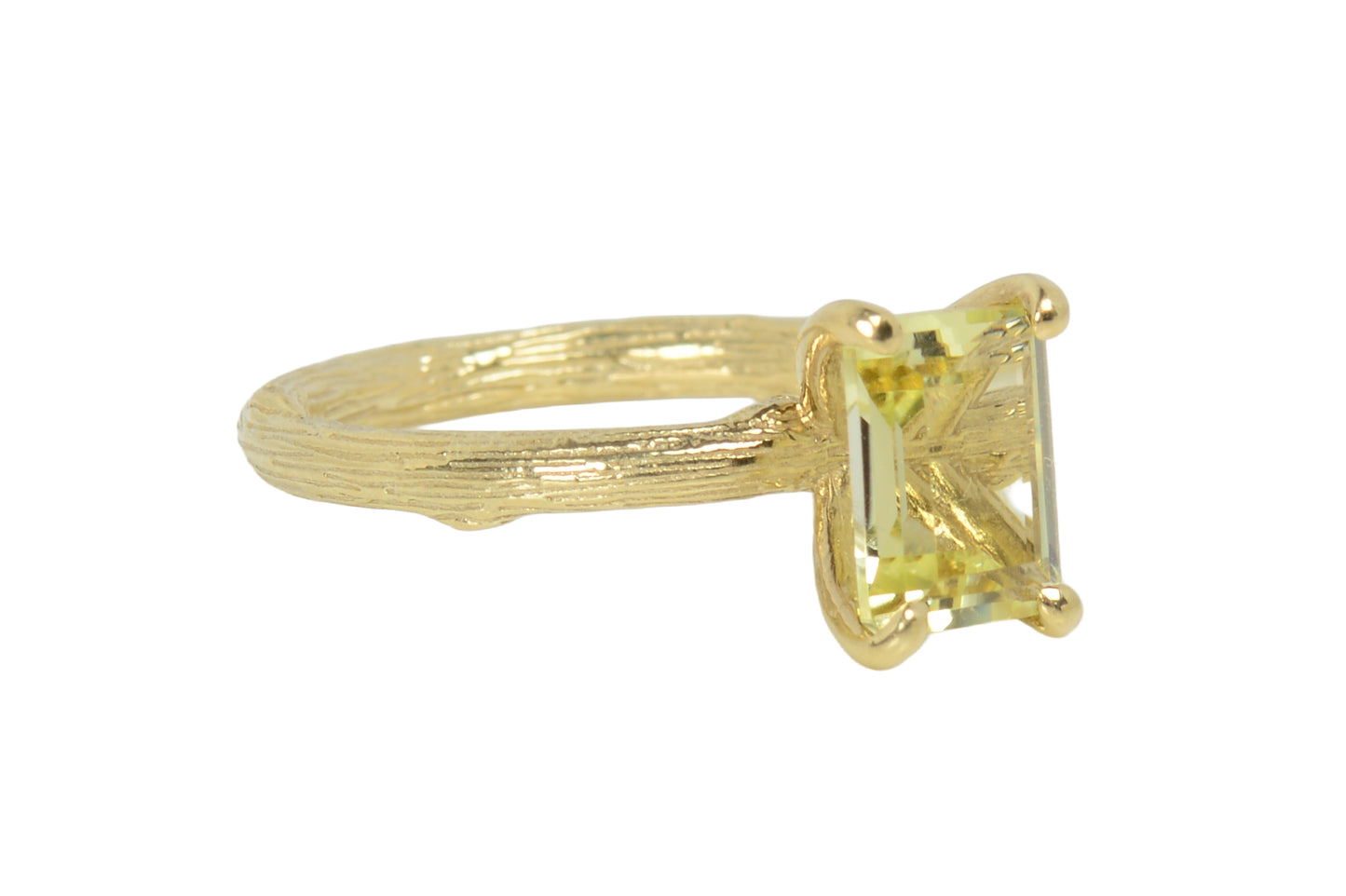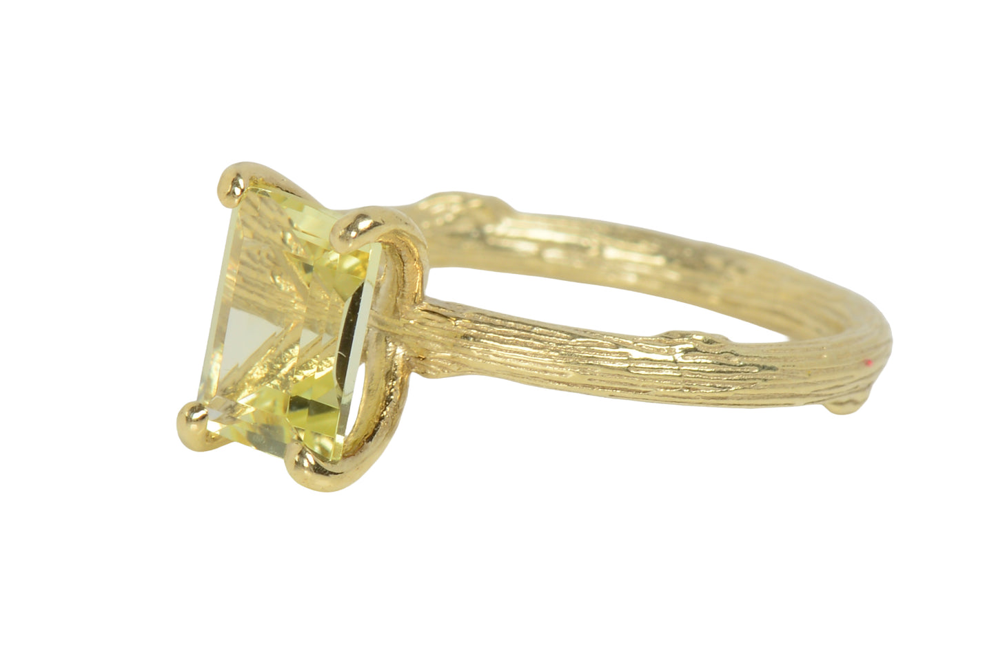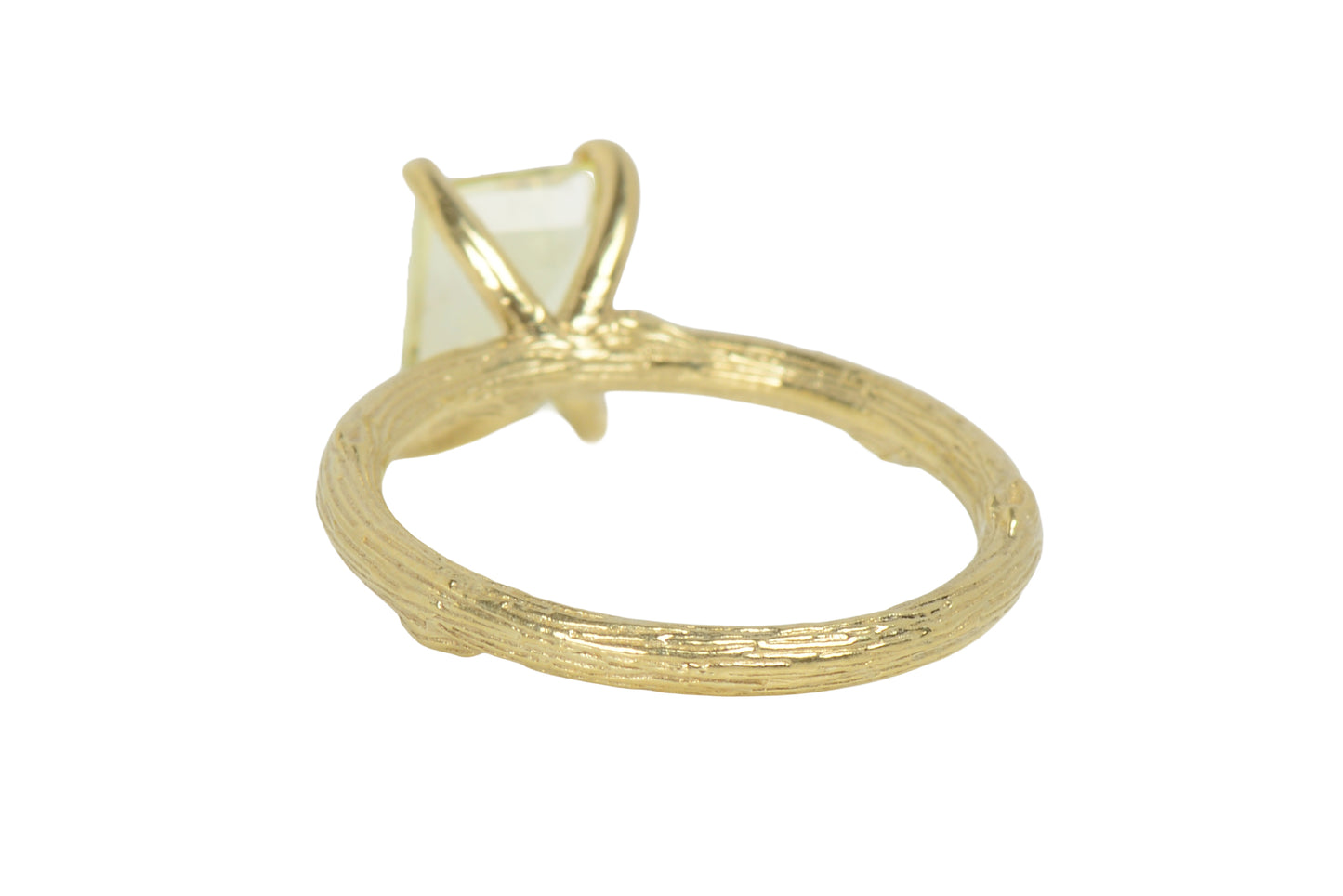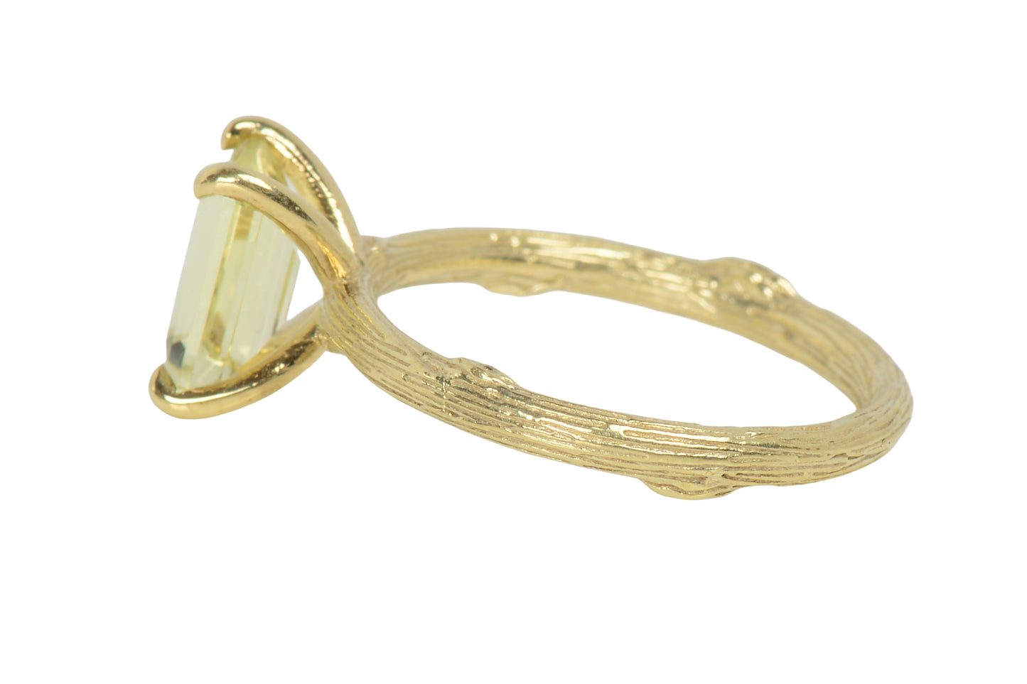 At the center is an uplifting, sunny lemon yellow natural citrine creating a ring that bridges the human touch with the natural world.