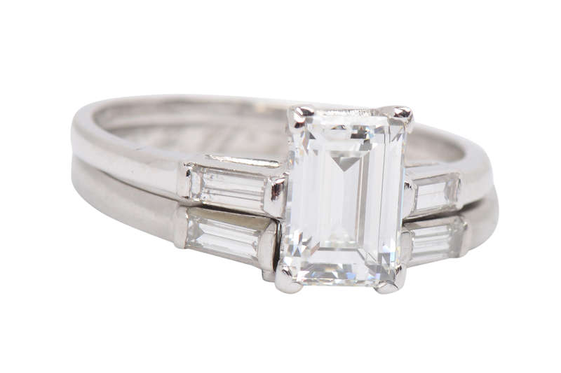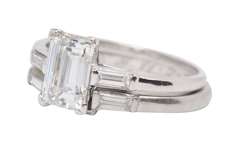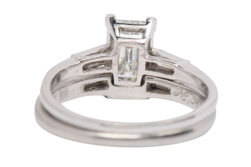 "E" Color Emerald Cut Diamond Wedding Set of 1959